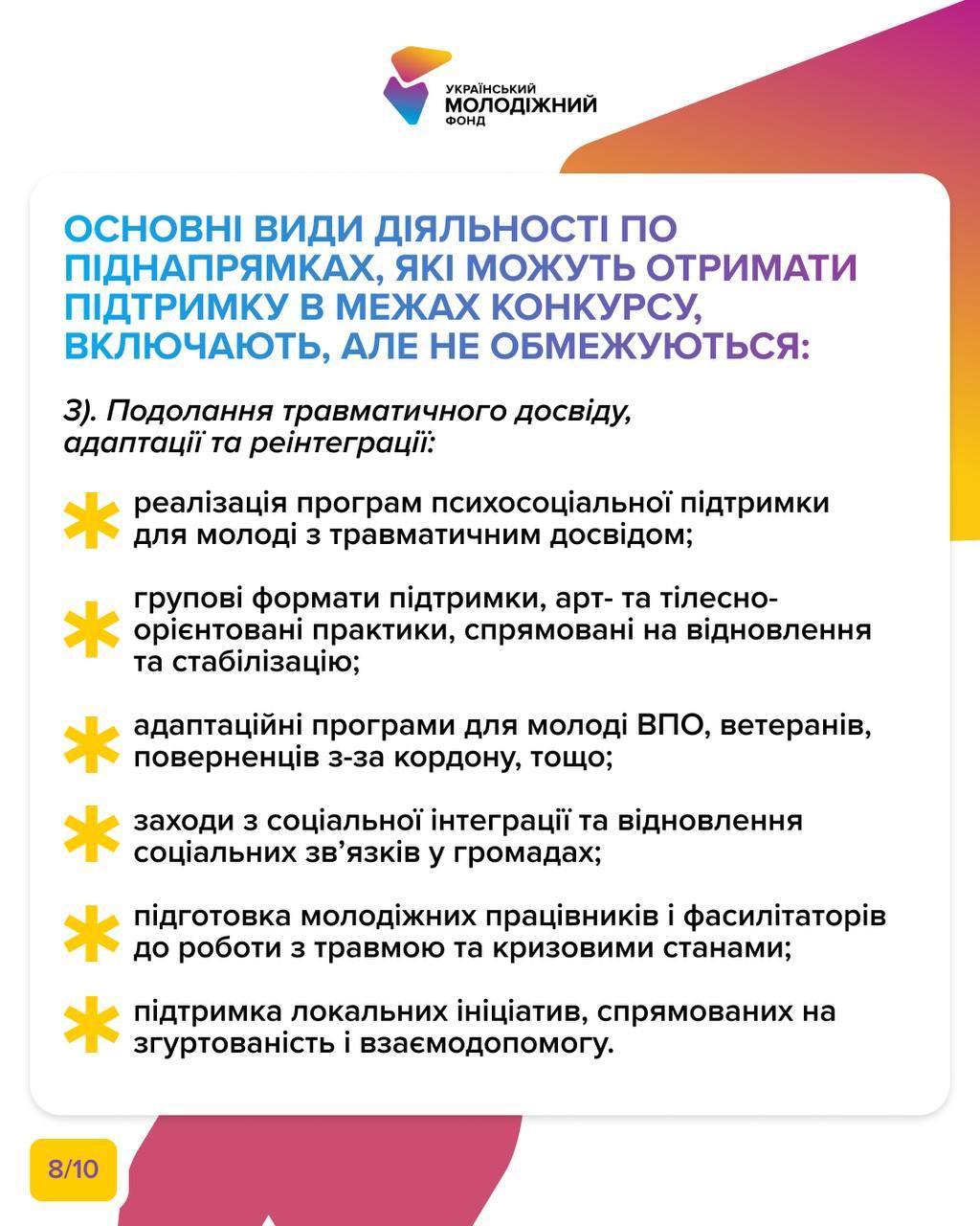 підтримка адаптації та реінтеграції молоді з травматичним досвідом;